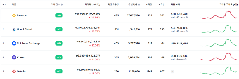 5. 현물 위주의 차트, 특히 바이낸스 참고