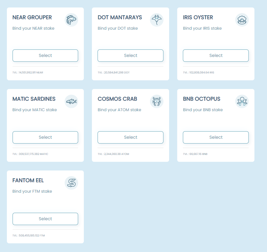 말린 플로우민트에서는 POND 코인을 활용해 코스모스, 팬텀, 니어, 아이리스넷, 메틱, 니어, 폴카닷 스테이킹 및 채굴이 가능합니다.