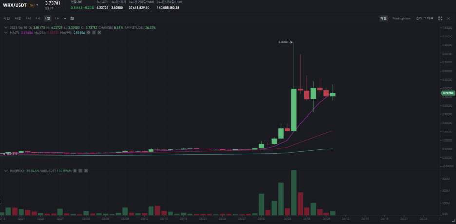 인도 가상화폐에 대한 이슈도 있었지만, 상승 내막에는 바이낸스 USDT 마켓에서 WRX를 거래 할 수 있었기 때문이라는 분석들도 나오고 있는데요.