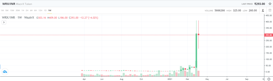 이번 인도 코인 이슈에 가장 큰 수혜를 받게 된 코인 WRX(와지르엑스)코인입니다. 인도 최대 거래소인 와지르엑스에서 발행한 일명 '거래소코인'으로 한달간 35루피(한화 525원)에서 400루피(한화 6000원)까지 1200%가량 상승했습니다.