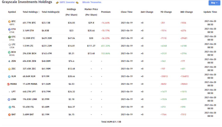 미국 최대 암호자산 운용사인 그레이스케일의 일별 업데이트를 체크 할 수 있는 사이트입니다. 가상화폐 데이터를 수집하고 제공해주는 bybt라는 곳이며, 그나마 안정적으로 투자 할 수 있는 코인 종목/리스트를 확인 할 수 있다는 장점이 있습니다.