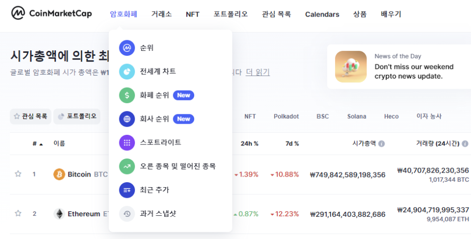 암호화폐 가격, 차트 및 시가총액 | CoinMarketCap