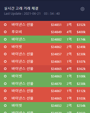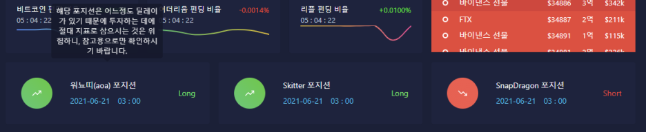 개인적으로 마음에 드는 기능 중 하나는 실시간으로 체결되는 고래들의 롱/숏 거래대금인데요. 실제 매매 참고 비중이 크지는 않습니다만, 바이낸스 거래소만 주력으로 사용하는 입장에서 다수의 거래소 실시간 거래대금 확인이 손쉬워지는 측면이 있습니다.