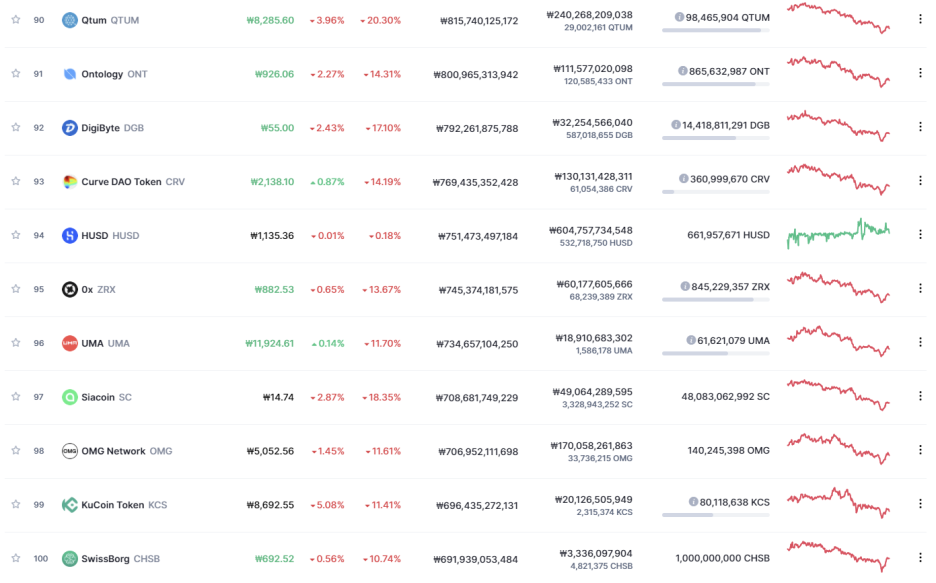 100위권 밖의 코인들이 바로 내일 아침 어떤 일이 벌어질지 쉽사리 예측하기가 어렵기 때문이기도 하죠. 지키는 것이 더 중요한 요즘 시기에 코인 투자를 진행하고 계신다면 꼭 참고하시기 바랍니다.