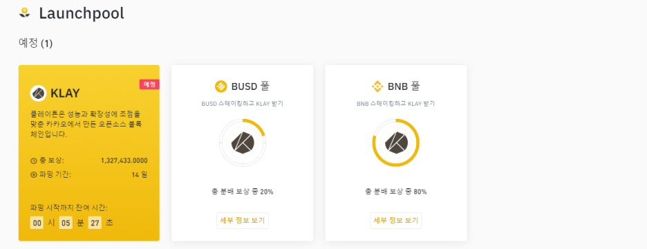 그리고 6월 25일 오전 9시부터 바이낸스에서 클레이(Klay) 런치풀(Launchpool) 이 시작됩니다.