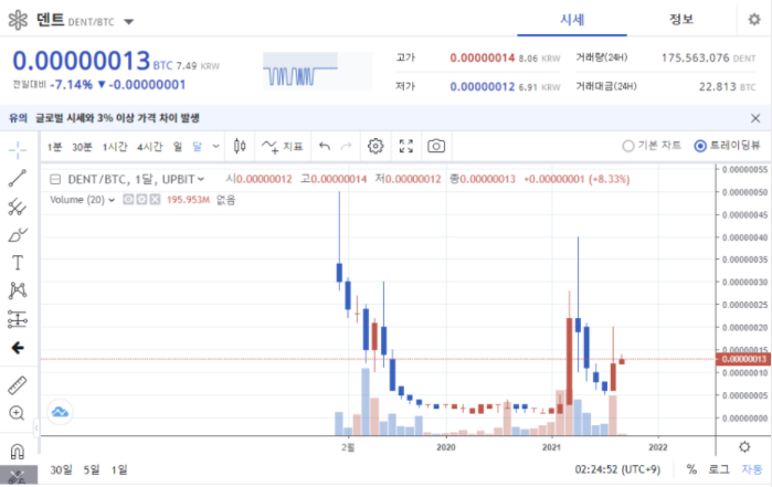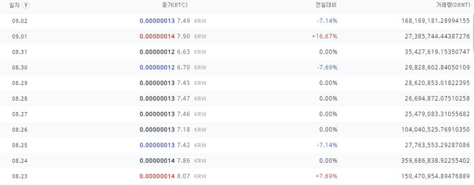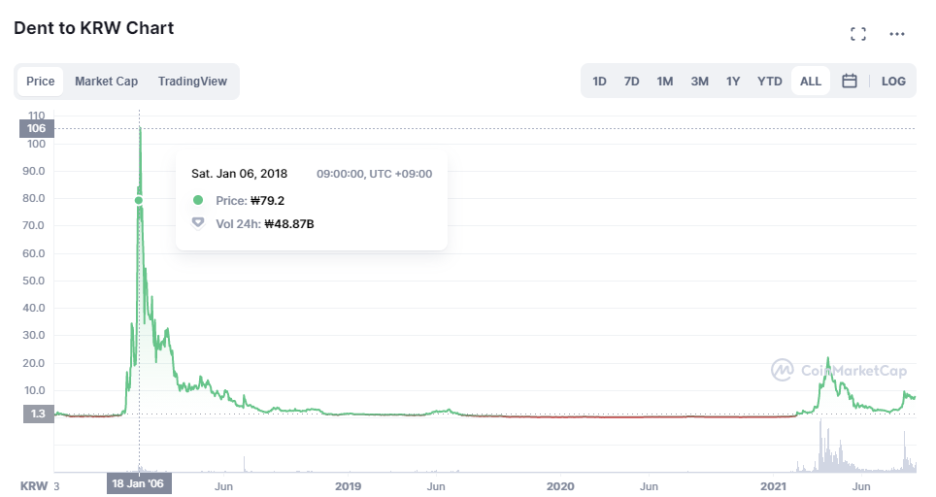 대표적으로 덴트(DENT)라는 녀석이 있는데요. 현재 덴트는 13사토시로 한화 약 7~8원대 거래가 가능합니다.