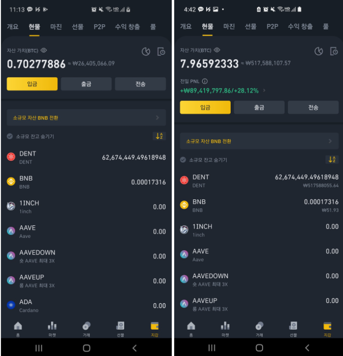 지난 3월 불장에서 덴트좌로 등극한 한 코인판 유저의 수익 인증글입니다. 이분은 국내 거래소에서 코인을 구매한 뒤 바이낸스로 넘겨서 판매 후 덴트를 구매하신거죠.