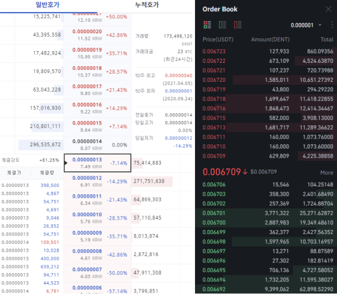 업비트 BTC 마켓보다 바이낸스에서 덴트를 구매하기가 좋은 이유는 호가갭에 있습니다.