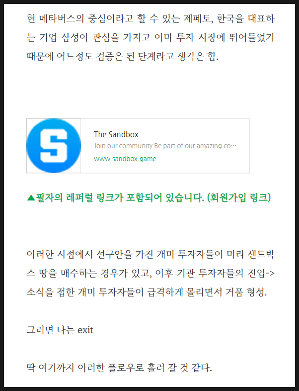 (해당 레퍼럴 링크는 별도의 수수료를 받지 않으나, 프리세일 참여 후 랜드 구매 시 일정 수수료가 필자에게 제공되니 참고)