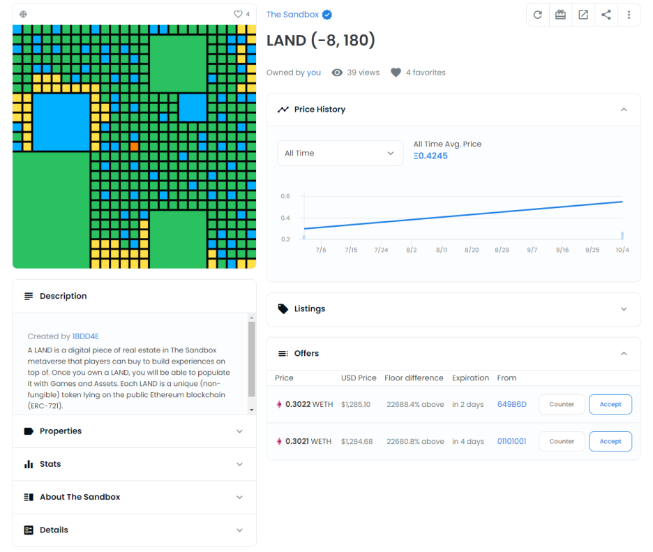 현재는 프리세일 기간이 아니기 때문에 사람들이 구매한 랜드를 이더리움 또는 샌드박스로 구매하는 방법 밖에 없다.