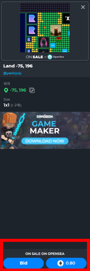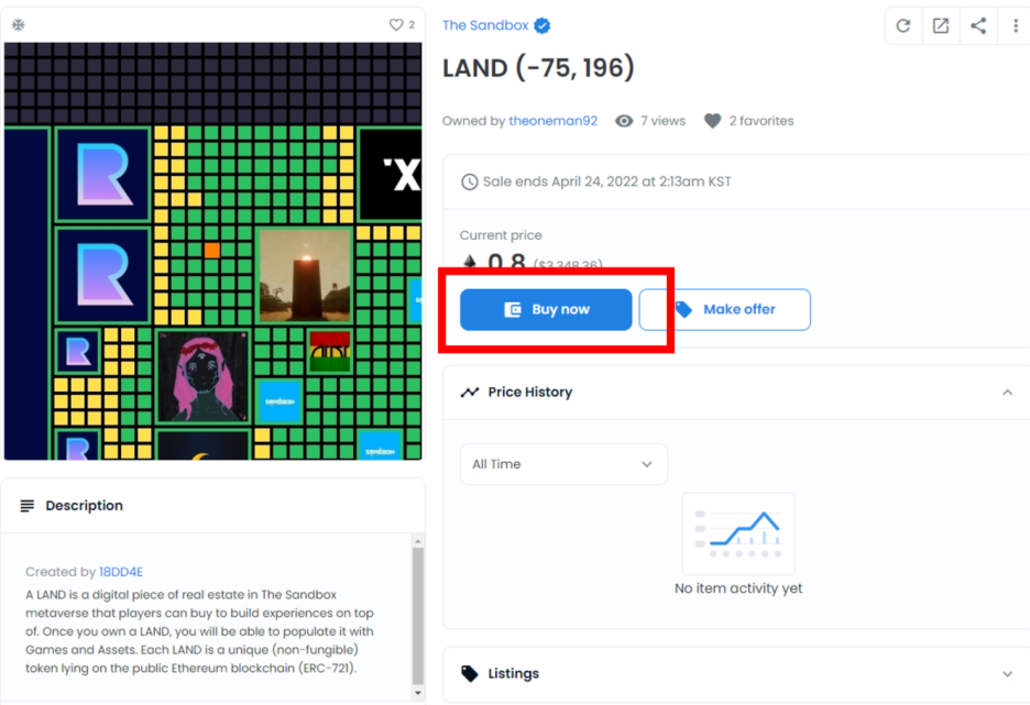 지난 번 포스팅을 보시고 따로 샌드박스 랜드구매에 대해 문의해주시는 분들이 여럿 있었다.