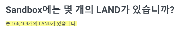 게다가 샌드박스 랜드는 16만 6천여개만 판매되는 희소성을 지닙니다. 랜드 수량은 더 늘어나지 않으며, 영원히 16만개를 유지하는 것이 핵심입니다.