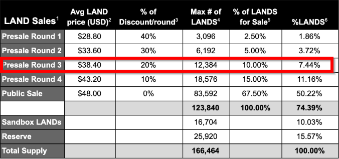 그간 샌드박스에서 판매한 랜드는 여러차례 라운드를 거쳐서 판매가 되어왔습니다. 초기 라운드보다 가격은 많이 올라와있는 상황이죠.