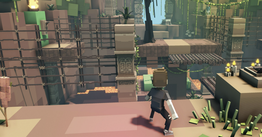 랜드 위에서는 복셀화 된 구조물들을 이용해 일반적인 주택의 형태로 변형을 한다거나