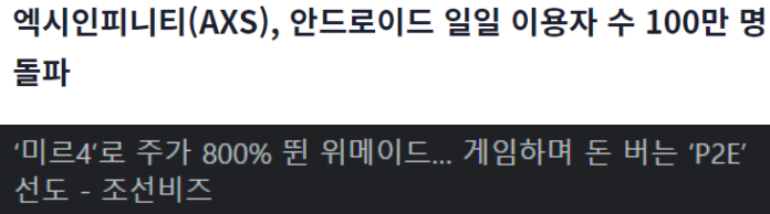 '진짜로 게임을 하면서도 돈을 벌 수 있다고?' 위믹스(미르4)나 엑시인피니티(AXIE) 보시면 아시잖아요.