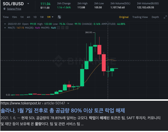 일찍이 락업 해제가 예고됐었던 솔라나(sol) 코인의 경우 폭발적인 가격 상승을 보이며, 시장에 물량이 풀리는 것이 결코 악재만 될 수 없음을 증명하기도 했었죠.