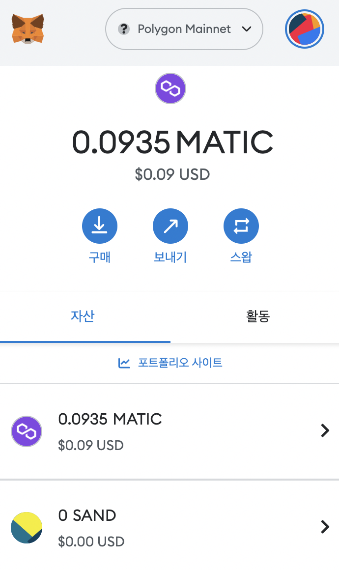 2. 국내 거래소->메타마스크->폴리곤 샌드박스 스왑