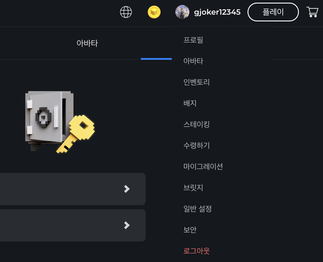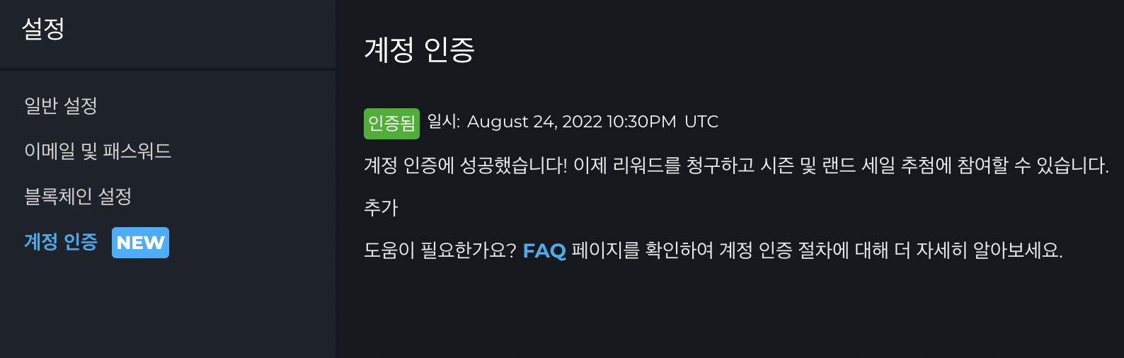 먼저, 더 샌드박스KYC 인증이 진행되어야 합니다. 메뉴 우측 프로필 클릭→보안 탭에 들어간 뒤 좌측에 계정 인증 항목에서 KYC 인증을 진행해주시면 됩니다.