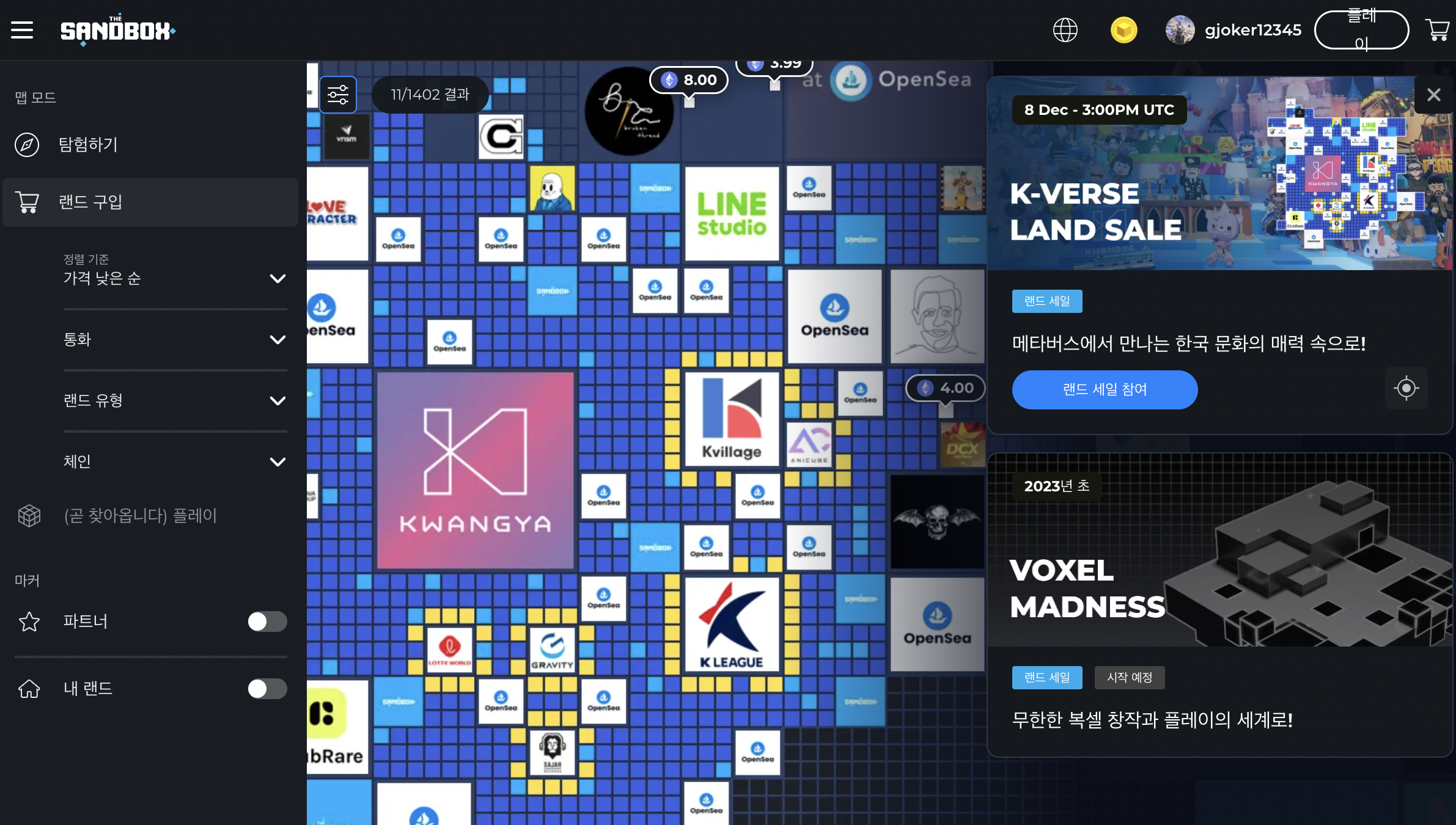 더 샌드박스 랜드 그러니까 땅을 구매하면 샌드박스 코인 생태계에 직접적으로 개입할 수 있고, 랜드 세일을 통해 구매 후 마치 부동산을 매각하듯이 차익을 볼 수 있어 재테크, 짠테크 수단으로도 활용 할 수 있습니다. 주요 랜드 세일 중 하나인 K-verse 랜드 세일을 참여하는 방법을 이번 글에서 소개드릴까 해요.
