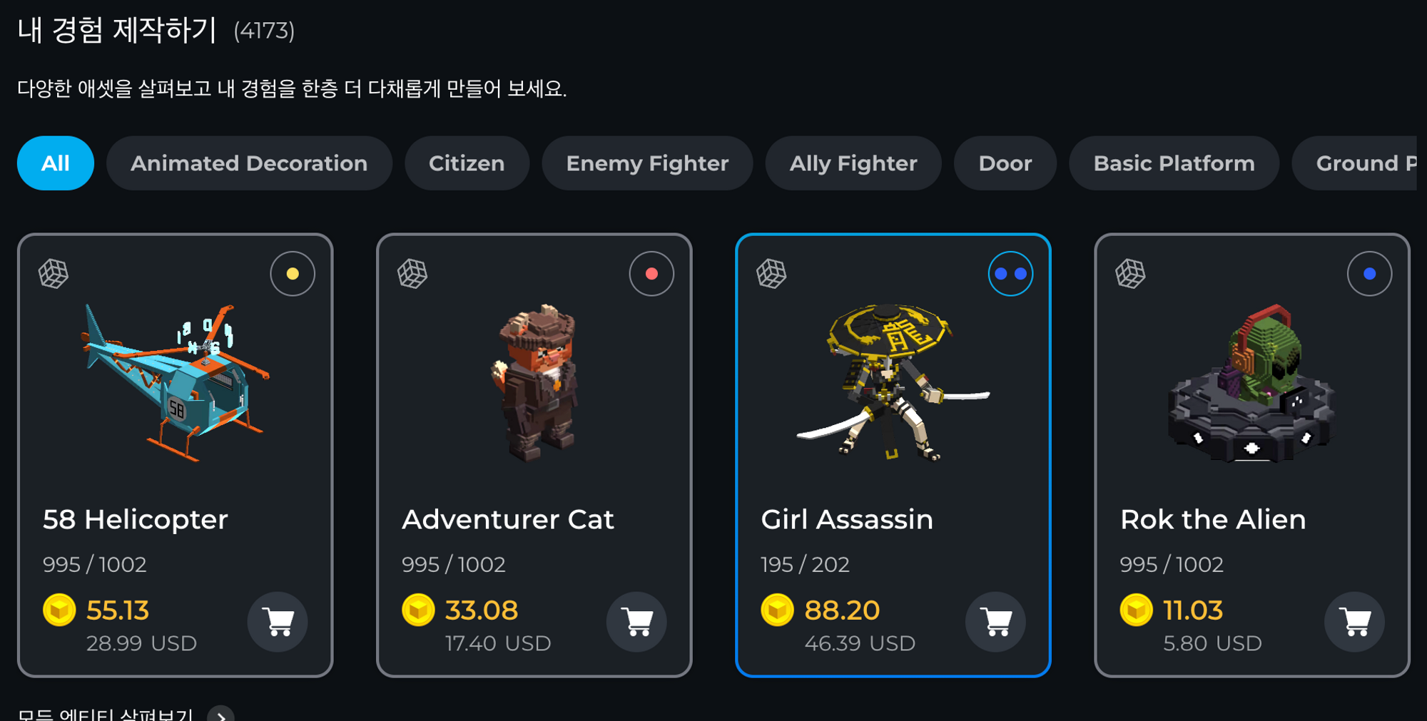 현재 마켓플레이스에는 다양한 크리에이터들이 직접 제작한 NFT가 샌드박스로 거래되고 있습니다. 수백 수천만 달러 이상의 의미 있는 수익을 거둔 제작자들이 두각을 보이고 있고요. 네임드 제작자들의 복셀 NFT는 큰 인기를 구사하고 있습니다.