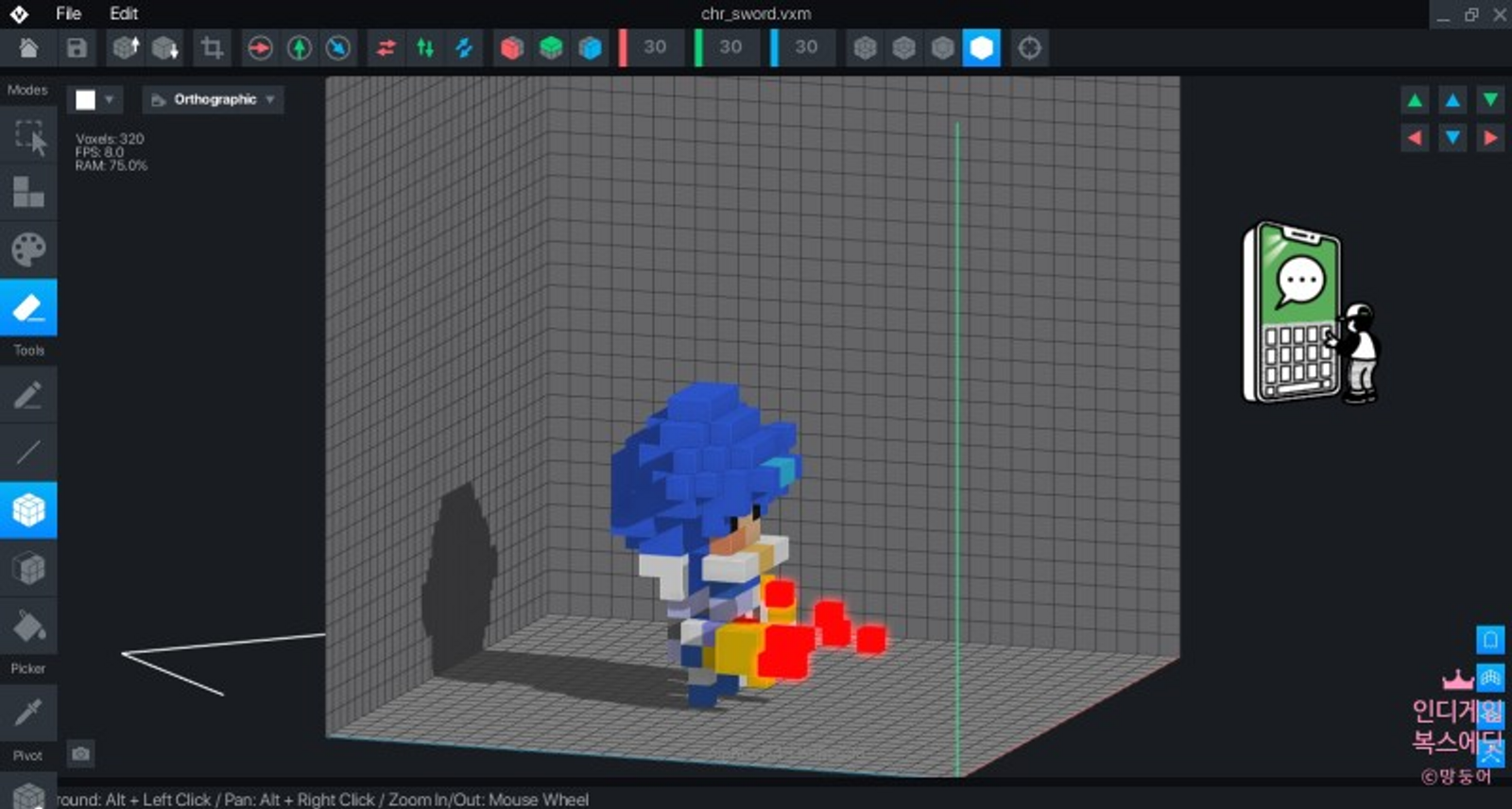 더샌드박스에서 창작을 할 수 있도록 도와주는 시스템이 있습니다. 바로 ‘복스에딧’이라는 툴인데요. 복셀 기반의 NFT를 직접 모델링하고 애니메이션 작업까지 통합적으로 제공하며, 누구나 쉽게 다룰 수 있도록 설계된 점이 특징이라고 보시면 됩니다.