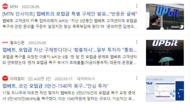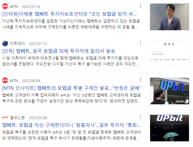 업비트에서 오입금 사례는 출범 이후로 빈번하게 발생하고 있습니다. 2021년까지 집계된 오입건 건수만 3만 2천건에 달하며, 그 규모만 무려 1540억원이라고 합니다.