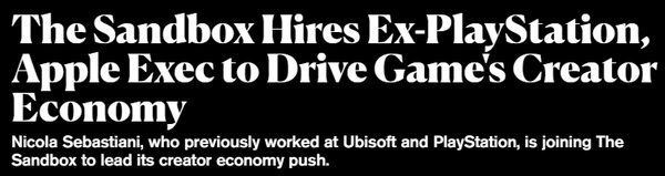 디크립토 보도에 따르면, 애플에서 아케이드 서비스를 기획하는데 참여한 니콜라 세바스티아니를 더샌드박스 COO로 새롭게 영입하였다고 합니다.