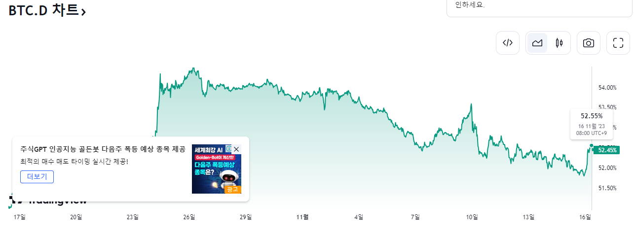 비트코인 도미넌스는 지난 11월 9일 53.59% 달성 이후 글을 작성하는 시점 52%가량 하락하여 자금이 이더리움을 비롯한 알트코인으로 이동하고 있습니다. 이더리움 상승에 따라 여러 알트코인들이 적게는 30% 많게는 7~80% 급등하고 있어 아직까지 큰 시세 상승을 보여주지 않은 알트. 특히 샌드박스 코인 가격에 대해서 코이너들의 관심이 집중되고 있습니다.
