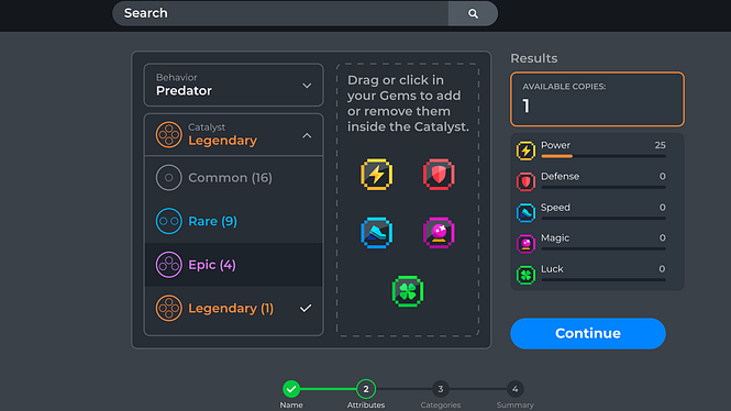 랜드를 통해 발생시킬 수 있는 수익은 2n NFT 트렌드가 돌아오지 않는다면, 카탈리스트를 통해 일부 기대 수익을 바라볼 수 있겠습니다. 카탈리스트는 에셋에 능력치를 부여하는 소위 ‘소켓’을 입히는 개념이라고 보시면 되겠고, 커먼/레어/에픽/레전드 4가지 등급으로 분류됩니다. 샌드박스 NFT 에셋들의 희소성을 판단하는데 필요한 요소로 자리매김하고 있기 때문에 생태계 내에서 높은 가치를 형성하고 있지요.