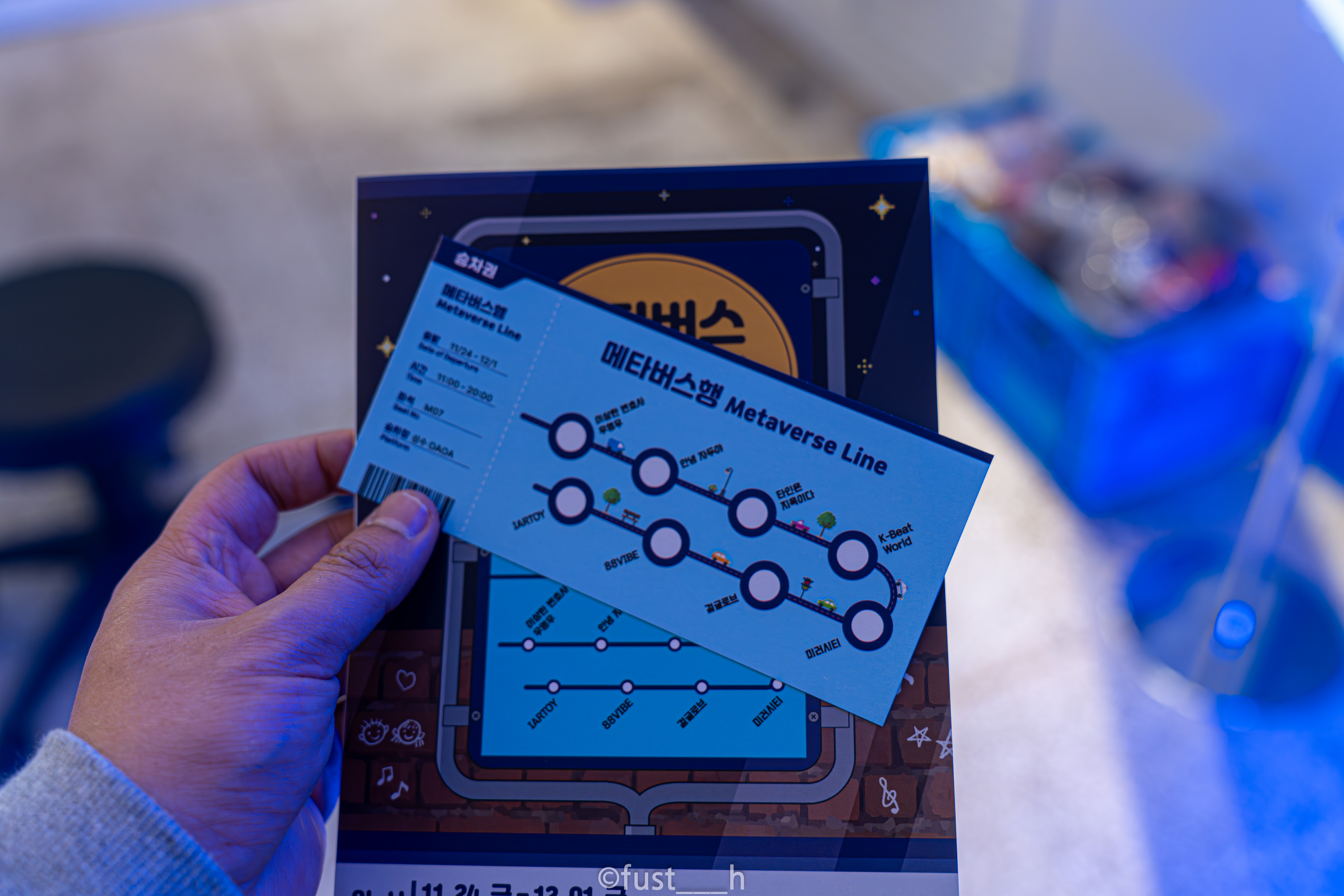메타버스에 탑승하려면 승차권이 필요하겠죠. 입구에서 안내 팜플릿과 체험을 위한 승차권을 받아주세요. 총 8가지 체험이 알차게 준비된 모습입니다. 체험을 마치면 1개의 스탬프를 받고, 스탬프를 모두 채우게 되면 굿즈를 증정하는 이벤트도 진행됩니다.