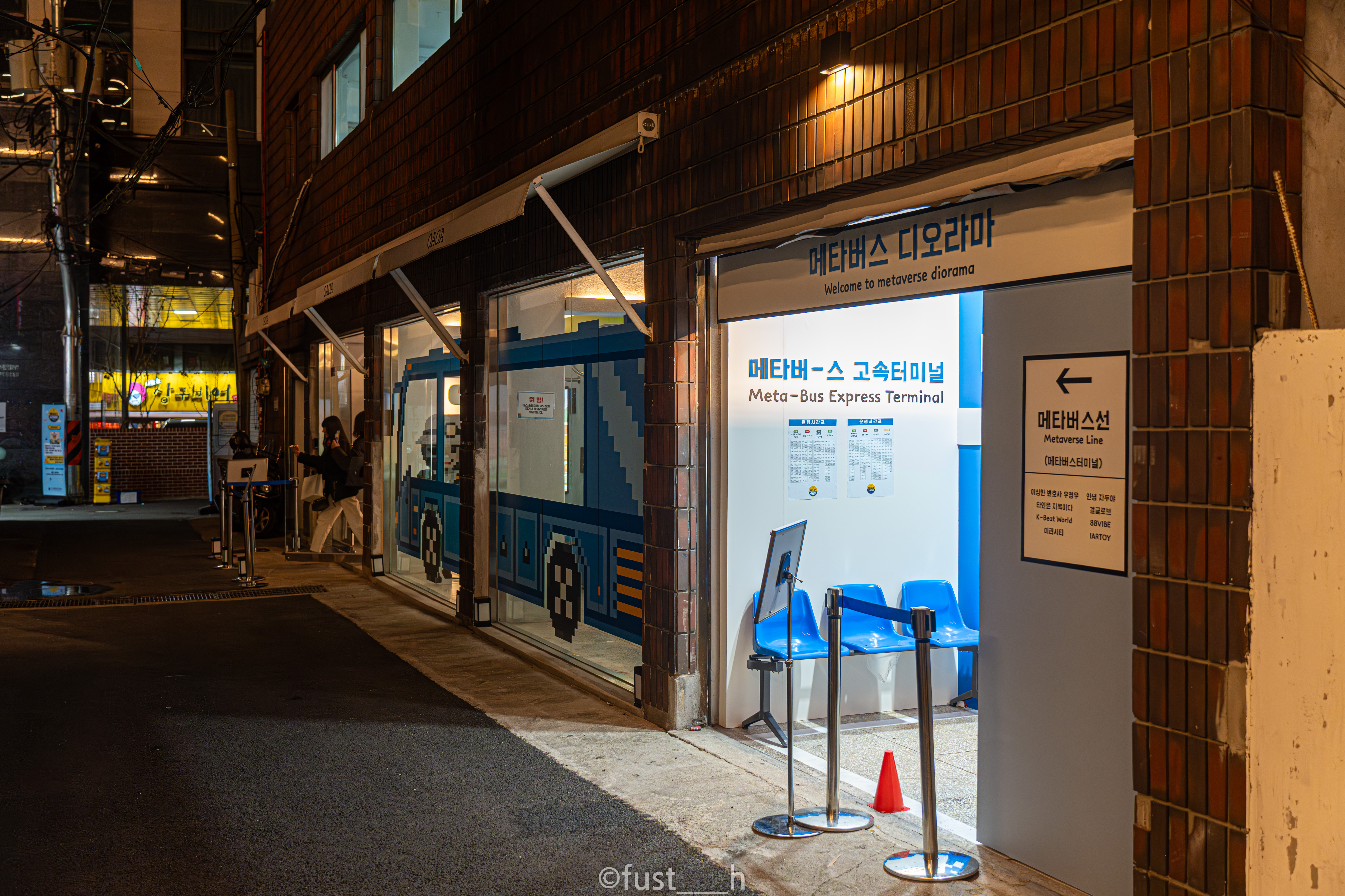 흥미롭게도 입구마저 버스 정류장으로 꾸며졌습니다. 메타버스가 정말 버스가 된 셈이지요. 입장료는 당연 무료입니다.
