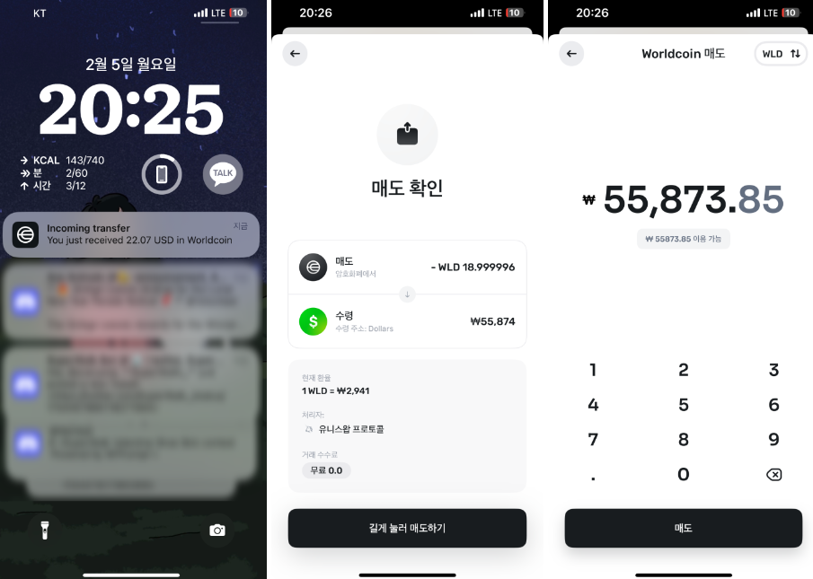 월드코인 어플리케이션 내 매도 기능이 있습니다.