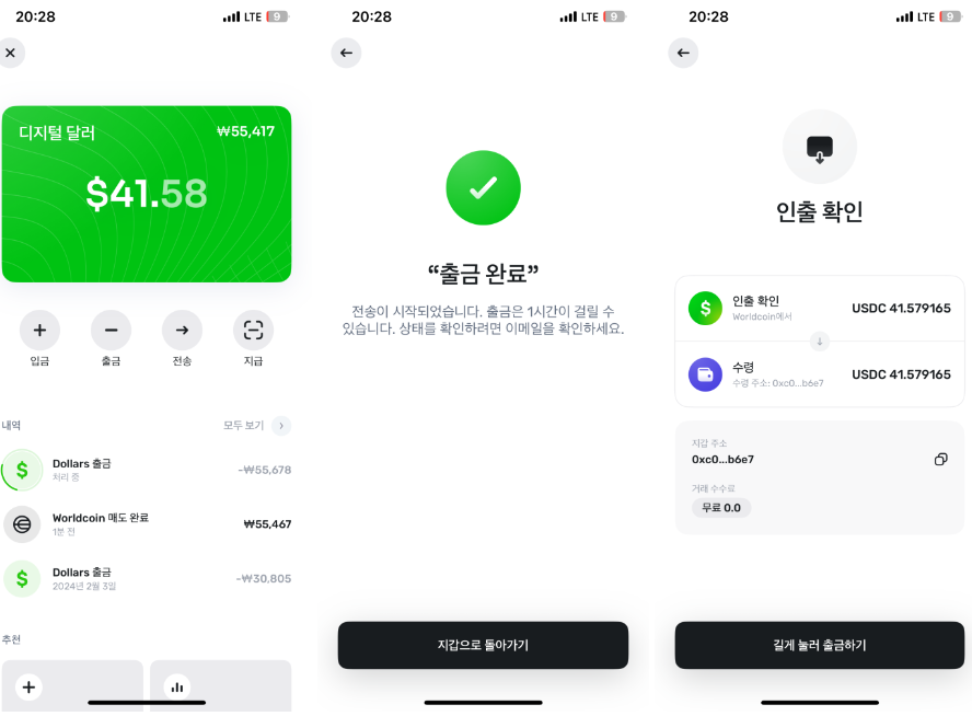 월드코인을 어플 내에서 USDC로 교환한 뒤 달러로 가지고 있는 방법도 있고요.