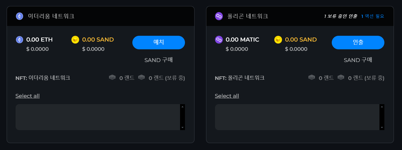 청약에 필요한 샌드박스는 이더리움이 아닌 폴리곤 네트워크 위에 있는 샌드박스이므로, 반드시 폴리곤 네트워크로 자산을 준비하셔야 하는데요.